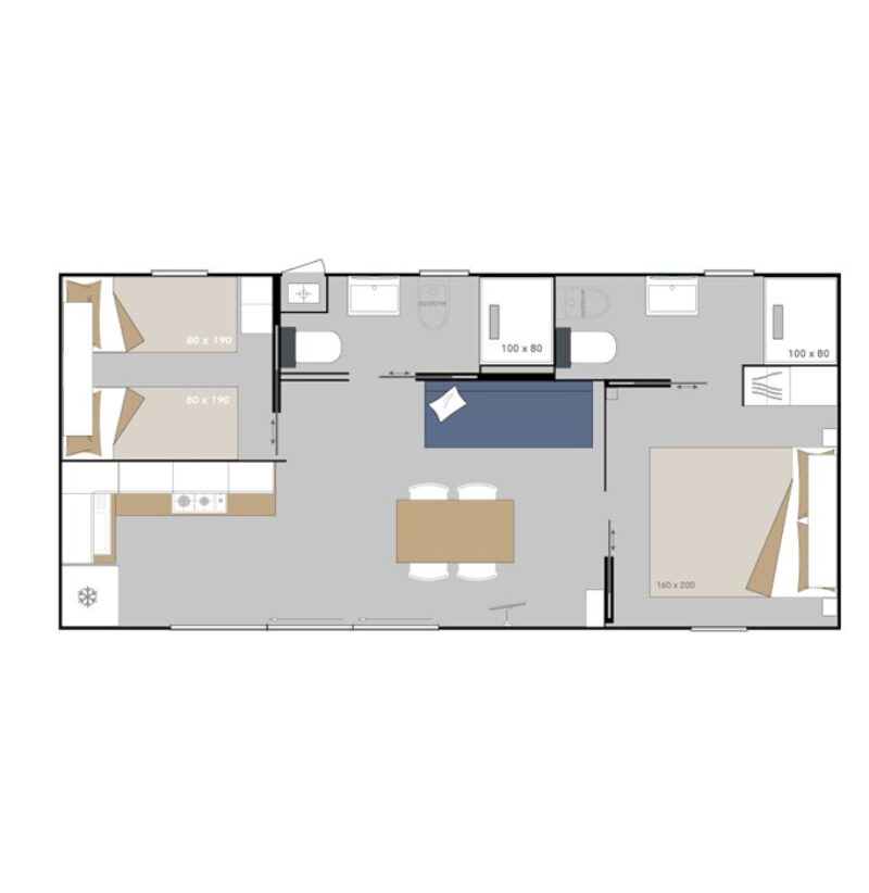 15 mobil-homes LOUNGE de 1 à 3 chambres équipés d’une à deux salle d’eau