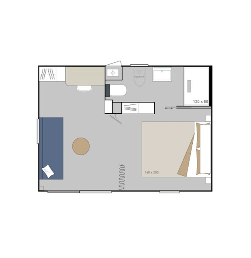 • Letto 160 x 200 cm, armadio con anta scorrevole e prese + USB integrati nelle camere matrimoniale